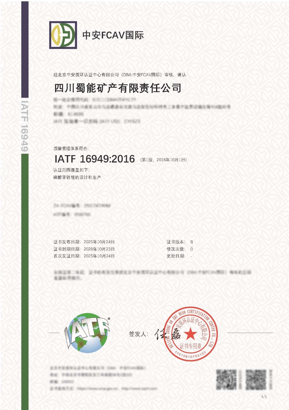 IATF 16949是国际汽车行业公认的顶级质量管理标准,以其体系的严苛性、流程的精密性著称。它要求企业建立覆盖产品设计、生产制造与供应链管理的“零缺陷”保障体系。此次认证的通过,不仅是对伟德国际1946bv官网公司卓越质量管理水平的国际认可,更意味着公司的磷酸铁锂产品已成功斩获进入全球顶尖汽车供应链的关键资质。