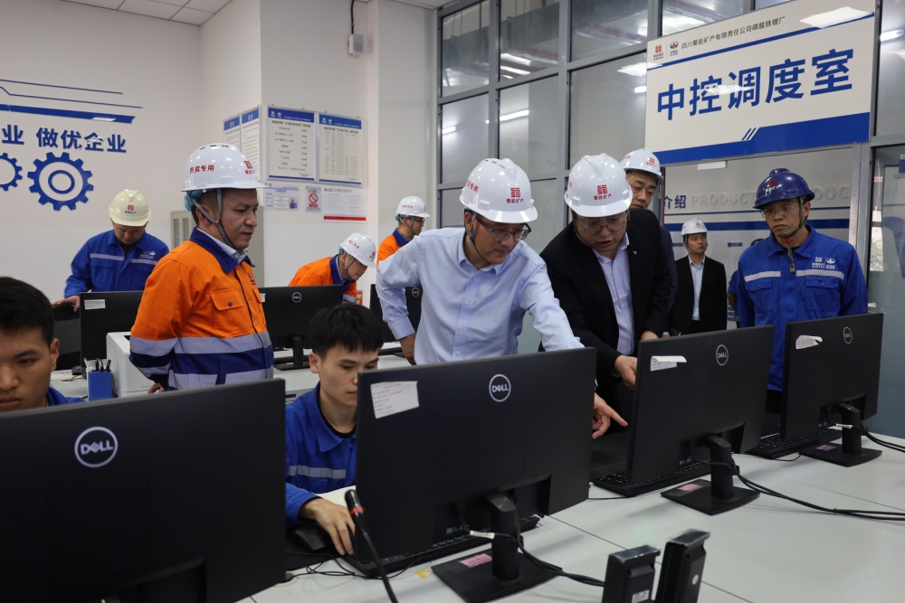 蒋永林一行深入三号矿山施工现场、驻地办公生活区、磷酸铁锂厂生产车间、公司应急调度指挥中心等地进行实地调研,听取有关工作汇报,详细了解公司安全环保、项目建设运营等工作推进情况并召开交流座谈会。